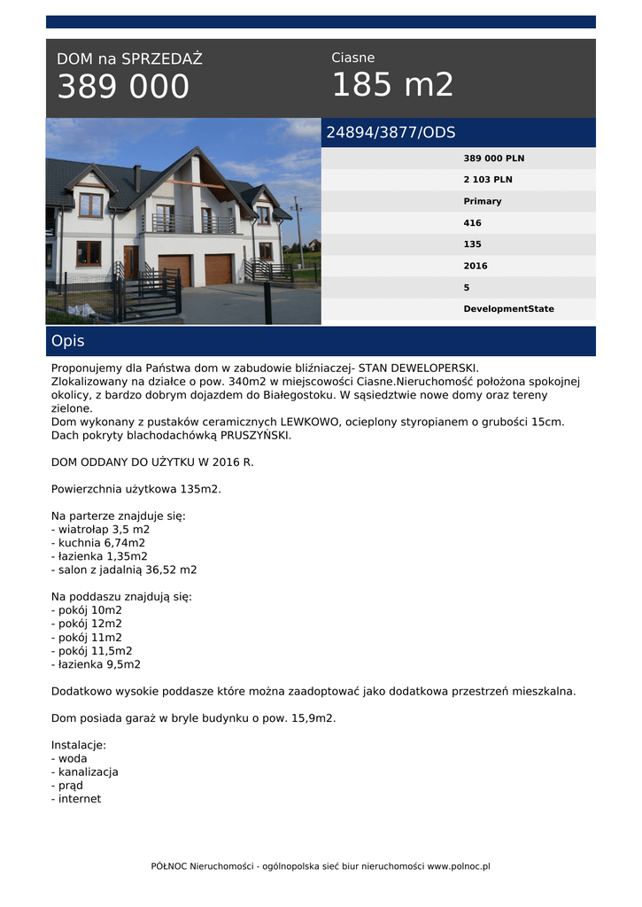 Wydruk oferty PDF - PÓŁNOC Nieruchomości