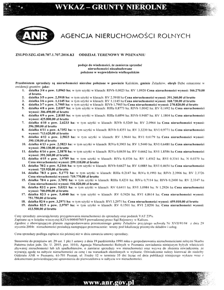 oddziału ANR rv Poznaniu. 61-701 Poznań. ul. Fredry l2 rv terminie 35 dni licz4c od dnia publikacji ninie.jszegowykazu u,raz z'