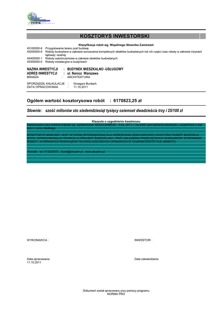 KOSZTORYS INWESTORSKI