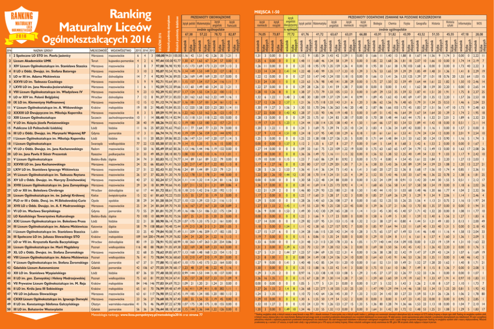 liczba zdających wskaźnik liczba zdających 1,67 2,07 1,68 1,85 1,39 1,64 1,62 1,87 1,47 1,79 14 10 6 49 37 44 38 41 20 31 1,56 1,66 0,00 1,48 1,01 1,61 1,59 1,51 1,35 1,34 9 10 0 31 18 22 30 20 12 25 1,74 3 0,00 0 2,22 0,00 0 1,74 14 2,19 0,00 0 1,73 40 2,22 1,36 1 1,41 8 2,29 0,76 20 1,55 64 1,03 1,82 5 1,50 10 2,46 2,20 1 0,00 0 2,65 1,91 1 1,75 8 2,37 2,20 1 1,57 26 2,53 0,53 1 1,46 6 2,04 1,46 1,48 1,38 1,40 1,25 1,29 1,35 1,27 1,22 1,15 0,92 1,30 1,43 1,25 0,00 0,92 1,21 1,32 20 5 17 4 10 6 5 7 19 32 2 7 6 4 0 4 18 3 1,48 0,00 0,00 1,50 1,24 0,18 0,00 0,00 0,00 0,00 0,00 1,31 1,41 1,39 0,00 1,14 1,50 0,00 2 0 0 1 2 1 0 0 0 0 0 6 3 2 0 1 1 0 1,87 1,69 1,70 1,64 1,83 1,81 1,71 1,64 1,75 1,56 1,73 1,58 1,60 1,52 1,32 1,68 1,40 1,85 86 51 38 66 4 61 64 5 63 52 4 33 20 55 24 65 44 27 1,66 1,45 1,48 1,57 1,36 1,61 1,48 1,64 1,60 1,38 0,80 1,43 1,27 1,43 1,09 1,56 1,10 1,69 103 46 44 83 24 61 84 8 65 52 4 26 22 46 18 58 51 26 1,73 1,64 1,63 1,54 1,69 1,53 1,31 1,68 1,47 1,25 1,54 1,30 1,36 1,50 0,91 1,41 1,03 1,29 45 39 44 53 42 41 33 3 34 40 45 89 8 33 13 57 68 3 1,83 1,67 1,75 1,89 0,00 1,74 1,62 1,42 1,79 1,49 1,61 1,59 1,68 1,67 1,42 1,58 1,48 1,29 27 54 6 41 0 24 30 6 12 54 22 54 17 46 20 58 46 9 1,51 1,64 1,32 1,42 1,16 1,54 1,24 1,53 1,49 1,22 1,84 1,59 1,56 1,36 1,44 1,54 1,30 1,34 56 20 21 18 1 12 13 2 13 9 3 23 10 22 30 19 66 9 1,47 10 1,73 9 2,48 63 1,39 2 1,74 2 1,95 18 2,01 2 1,89 6 2,32 23 0,00 0 0,51 1 2,11 14 0,00 0 1,57 2 0,00 0 0,00 0 2,01 9 2,54 10 0,90 1 1,16 5 1,74 5 0,00 0 0,00 0 1,67 1 0,00 0 1,63 17 2,08 26 1,03 3 1,17 9 2,42 10 2,20 1 1,27 13 2,03 1 1,08 2 1,20 13 2,27 21 1,74 4 0,85 1 2,36 11 0,78 2 1,38 6 1,81 25 1,55 5 0,51 1 2,12 17 0,00 0 1,18 6 2,02 26 1,77 4 1,04 2 2,32 56 2,06 1 1,14 1 2,46 4 0 0 1,28 26 1,40 63 1,26 108 1,27 8 1,45 1 1,19 55 1,20 90 1,25 128 1,23 45 1,53 2 1,49 30 1,42 130 1,29 165 1,28 11 0 0 1,22 3 1,66 9 1,17 23 0,00 0 0 0 1,29 82 1,07 95 1,31 153 1,15 18 1,54 1 1,11 42 1,38 65 1,27 157 0,92 7 0 0 1,34 28 1,66 115 1,20 142 1,34 10 0 0 1,15 6 0,86 13 1,35 24 0,00 0 0 0 1,31 48 1,21 113 1,20 178 1,33 6 1,39 6 1,23 70 1,52 59 1,28 152 1,56 2 1,44 27 1,23 57 1,84 69 1,35 122 1,31 4 0 0 0,88 34 1,49 138 1,24 136 1,24 10 1,41 3 1,40 48 1,42 85 1,34 151 1,20 10 0 0 1,35 13 1,88 16 1,33 42 1,41 3 0 0 0,97 16 1,33 138 1,18 133 1,08 5 0 0 1,15 67 1,28 39 1,30 114 1,28 7 0 0 1,05 5 1,77 5 1,31 21 0,00 0 1,4 8 1,26 68 1,23 277 1,18 335 1,33 25 0 0 1,10 72 1,42 64 1,26 145 1,30 7 0 0 1,30 6 1,55 50 1,19 54 1,52 2 0 0 1,10 24 1,33 91 1,26 123 1,27 15 1,49 10 1,34 46 1,33 55 1,32 113 0,00 0 0,00 0,00 1,14 0,00 1,32 0,00 1,28 0,00 1,05 0,00 0,00 0,00 0,00 0,00 1,29 1,50 0,00 1,50 1,33 0,00 1,33 0,00 0 0 1 0 2 0 3 0 1 0 0 0 0 0 2 1 0 1 2 0 5 0 1,65 1,39 1,51 1,58 1,51 1,85 1,75 1,29 1,77 1,69 1,56 1,64 1,61 1,75 1,45 1,59 1,37 1,47 1,53 0,00 1,36 1,64 52 36 45 6 38 97 65 10 140 58 38 63 52 10 27 60 5 190 24 0 80 31 1,25 1,37 1,30 1,49 1,27 1,64 1,57 1,04 1,44 1,50 1,38 1,43 1,51 1,61 1,37 1,60 1,52 1,29 1,43 0,00 1,28 1,42 55 21 45 5 41 94 67 8 154 56 32 91 50 10 32 59 5 194 30 0 74 30 1,26 1,06 1,40 1,30 0,80 1,33 1,49 1,11 1,09 1,45 1,42 1,46 1,49 1,86 1,26 1,19 1,43 1,14 1,27 1,47 1,36 1,72 25 13 57 1 4 11 53 6 105 45 19 53 21 7 77 19 3 46 23 23 66 12 1,56 1,70 1,71 1,59 1,44 1,69 1,41 1,61 0,00 1,42 1,47 1,36 1,52 1,49 1,52 1,62 1,26 1,58 1,59 1,45 1,53 1,48 4 83 42 12 51 40 46 6 0 5 37 35 27 8 33 9 2 53 55 22 23 53 1,13 1,35 1,32 1,40 1,21 1,33 1,48 1,57 1,23 1,26 1,39 1,35 1,28 1,15 1,36 1,33 1,18 1,34 1,31 0,00 1,13 1,25 21 37 20 6 49 40 11 4 19 42 43 11 20 8 1 47 8 13 26 0 18 21 0,75 2 1,16 0,00 0 0,00 0,00 0 1,08 1,56 2 1,27 1,83 3 0,13 1,31 5 0,00 1,16 4 1,58 1,60 3 1,36 1,59 4 1,31 2,20 2 0,00 1,24 3 1,07 0,00 0 1,48 1,62 1 1,40 1,36 7 0,00 0,00 0 0,00 1,91 4 0,97 1,57 2 1,10 1,25 20 0,81 1,26 5 1,06 0,00 0 0,95 0,00 0 1,04 1,08 3 1,29 19 8 10 28 11 17 16 77 51 21 34 24 27 26 40 29 61 15 18 21 90,45 93,84 85,55 1,12 320 1,58 320 1,23 283 1,14 11 3 5 89,59 93,99 84,16 1,22 162 1,53 162 1,26 123 1,10 7 1 14 88,48 93,14 82,94 1,15 118 1,51 118 1,22 105 0,00 0 40 19 88,26 94,03 82,12 1,19 180 1,53 180 1,22 157 1,21 1 16 25 87,22 95,65 79,63 1,11 77 1,64 77 1,23 74 0,00 0 3 11 86,74 94,76 79,40 1,19 159 1,56 159 1,23 144 0,93 2 11 20 85,51 89,86 80,25 1,06 147 1,51 147 1,20 137 1,14 5 22 125 85,50 87,05 81,79 1,14 15 1,33 15 1,16 15 0,00 0 50 16 85,49 89,60 80,36 1,13 146 1,44 146 1,19 132 0,00 0 33 49 85,21 88,18 80,73 1,08 133 1,42 133 1,16 113 1,01 1 74 31 83,83 95,12 74,77 1,14 89 1,61 89 1,22 79 0,00 0 32 66 83,63 91,41 76,53 1,20 217 1,47 217 1,22 182 1,13 8 31 22 82,43 91,83 74,46 1,24 89 1,44 89 1,23 79 1,21 1 57 37 82,35 91,20 74,70 1,12 178 1,51 178 1,21 148 0,00 0 27 32 82,24 87,57 76,54 1,11 114 1,32 114 1,24 81 1,16 33 24 18 81,99 90,66 74,45 1,07 211 1,52 211 1,21 189 0,86 4 17 44 81,72 88,61 75,18 1,18 215 1,42 216 1,20 192 1,13 1 52 61 81,63 92,22 73,03 1,15 55 1,57 55 1,19 53 0,00 0 1,30 1,27 1,28 1,19 1,20 1,27 1,25 0,00 1,27 1,27 1,19 1,17 1,28 1,22 0,00 1,26 1,22 1,17 19 22 13 17 2 9 5 0 14 18 10 4 5 20 0 17 21 2 1,27 3 1,56 3 1,30 55 1,70 246 0,00 0 1,43 42 1,28 37 1,55 90 0,00 0 0 0 1,39 25 1,75 61 1,31 5 1,23 1 1,24 44 1,58 114 1,22 1 0 0 1,24 3 1,69 75 1,12 4 1,51 10 1,24 18 1,57 95 0,00 0 0 0 1,25 23 1,38 108 0,00 0 1,57 3 1,12 2 1,35 6 0,00 0 0 0 1,09 33 1,61 75 0,00 0 0 0 1,36 26 1,49 72 0,00 0 1,15 1 1,23 7 1,63 86 1,27 16 0 0 1,20 80 1,57 127 1,26 2 1,53 7 1,36 41 1,41 36 1,26 10 1,44 12 1,30 38 1,70 114 0,00 0 0 0 1,30 58 1,22 48 0,00 0 0 0 1,28 41 1,69 114 1,29 2 0 0 1,46 80 1,29 93 0,00 0 0 0 1,22 17 1,60 21 29 30 31 32 33 34 35 36 37 38 39 40 41 42 43 44 45 46 47 48 49 50 PLO nr III z Oddz. Dwuj. im. M.Skłodowskiej-Curie XVII LO z Oddz. Dwujęz. im. A. F. Modrzewskiego VI LO im. Wacława Sierpińskiego LO Katolickiego Towarzystwa Kulturalnego XXI Liceum Ogólnokształcące im. Bolesława Prusa III Liceum Ogólnokształcące im. Adama Mickiewicza I Liceum Ogólnokształcące im. Stanisława Staszica III Społecz