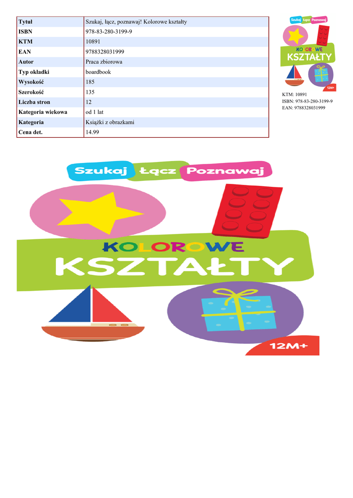 Tytuł Szukaj, łącz, poznawaj! Kolorowe kształty ISBN 978-83