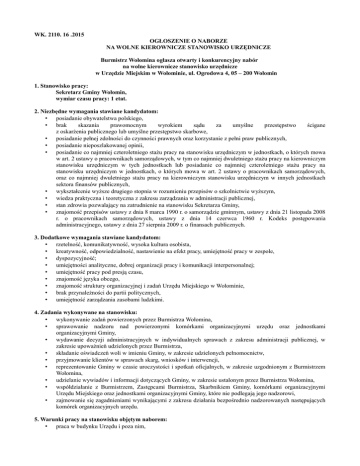 WK. 2110. 16 .2015 OGŁOSZENIE O NABORZE NA WOLNE