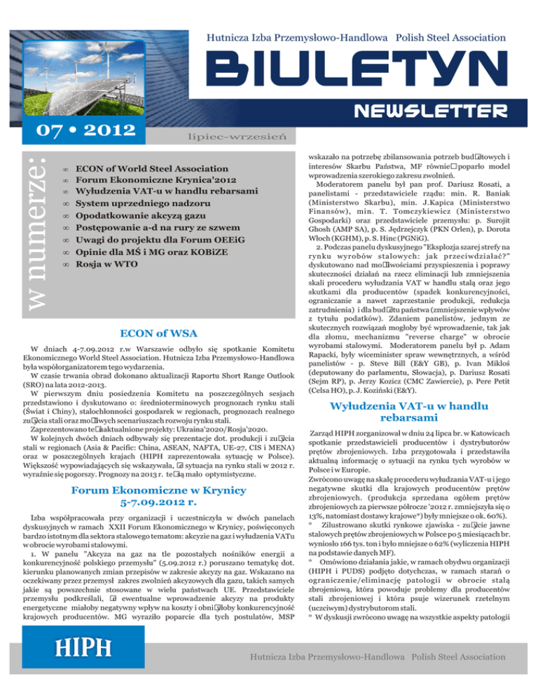 biuletyn nr 7_2012.cdr - Hutnicza Izba Przemysłowo Handlowa