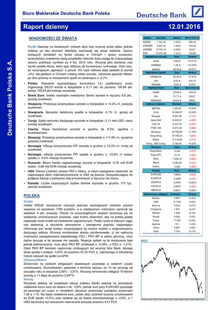 Raport dzienny - Biuro Maklerskie Deutsche Bank Polska