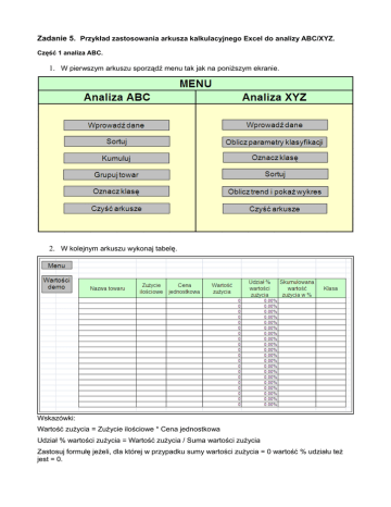 Zadanie 5. Przykład zastosowania arkusza kalkulacyjnego Excel do analizy ABC/XYZ.