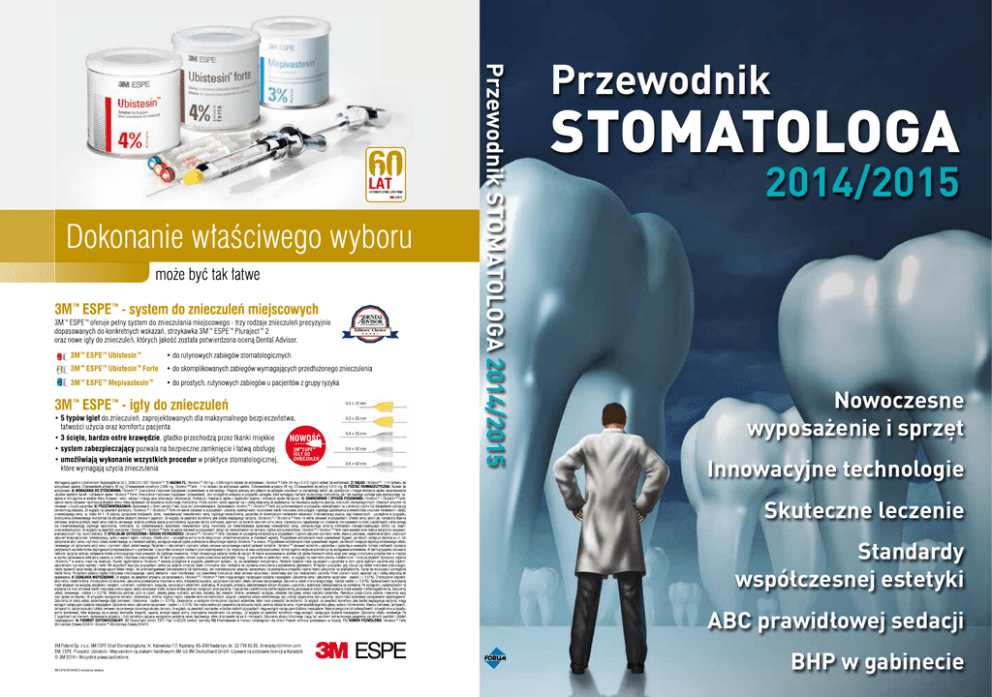 1 2 Przewodnik STOMATOLOGA 2014/2015 www.dentaladvisor.com Editors’ Choice ++++ / Przewodnik STOMATOLOGA 2014/2015 Nowoczesne wyposażenie i sprzęt Innowacyjne technologie Skuteczne leczenie Standardy współczesnej estetyki ABC prawidłowej sedacji BHP w gabinecie rekomendowany przez PTO rekomendowany przez PTO WSTĘP Szanowni Państwo! Oddajemy w Państwa ręce pierwszą edycję Przewodnika stomatologa 2014/2015. Jestem dumny, że mogłem współtworzyć wraz z Państwem ten unikatowy i, jak ufam, rewolucyjny projekt. Przewodnik stomatologa to pierwsza tak złożona i kompleksowo stworzona książka na polskim rynku wydawniczym o tematyce stomatologicznej. Dzięki współpracy z najlepszymi specjalistami ze wszystkich dziedzin stomatologii oraz z głównymi producentami narzędzi i materiałów stomatologicznych w kraju, udało nam się stworzyć publikację, która wyraźnie pokazuje, w którym kierunku zmierza nowoczesna stomatologia. W czasie gdy każdy stomatolog szuka dostępu do nowych technik, innowacyjnych metod leczenia oraz praktycznych wskazówek co do doboru narzędzi i materiałów, stworzyliśmy książkę, w której znajdziecie Państwo odpowiedzi na wszystkie nurtujące pytania i wątpliwości. Najskuteczniejsze techniki pracy w gabinecie oraz najbardziej innowacyjne rozwiązania prezentują w poszczególnych opracowaniach stomatolodzy praktycy, którzy z sukcesem wykorzystują prezentowane metody w swojej praktyce. Struktura Przewodnika… została stworzona tak, aby krok po kroku przeprowadzić Państwa przez świat nowoczesnej stomatologii. Zaczniemy od wyposażenia, sprzętu i innowacyjnych technologii. Następnie wpłyniemy na głębokie wody najważniejszych dziedzin stomatologii, czyli endodoncji, estetyki, pedodoncji, protetyki, implantologii, ortodoncji i periodontologii. Zatrzymamy się na chwilę przy sedacji, gdzie znajdziemy odpowiednią przystań i przygotujemy się na meandry wypełnień i wybielania. Swoją podróż będziemy kontynuować, przechodząc przez gąszcz porad z zakresu antyseptyki, dezynfekcji oraz dotyczących odzieży ochronnej. Kolejnym etapem będzie prosta droga szybkiego, sprawnego ruchu z praktycznymi wskazówkami dotyczącymi leasingu. Swoją podróż zakończymy na dokumentacji – niezbędnej do prawidłowego poruszania się w codziennej pracy w gabinecie. Doświadczenie i praktyka to jedne z najważniejszych cech w codziennej pracy. Tego nie da się kupić za żadne pieniądze. My dajemy to Państwu w tej publikacji. Z dumą zapraszam do lektury. Andrzej Szymczak Menedżer produktu Forum Media Polska Przewodnik stomatologa 2014/2015 1 Spis treści ROZDZIAŁ 1. Wyposażenie ROZDZIAŁ 2. Sprzęt Ochrona radiologiczna w gabinecie stomatologicznym 4 10 12 Skaner wewnątrzustny 16 18 22 ROZDZIAŁ 4. Endodoncja 26 ROZDZIAŁ 5. Protetyka i implantologia 30 ROZDZIAŁ 6. Periodontologia Rozmowy o technologii Vector® 34 36 ROZDZIAŁ 7. Sedacja 42 ROZDZIAŁ 3. Innowacyjna technologia Lasery w periodontologii i implantologii Uspokojenie wziewne podtlenkiem azotu jako metoda eliminacji lęku stomatologicznego 44 ROZDZIAŁ 8. Pedodoncja Leczenie zębów mlecznych u dzieci 48 50 ROZDZIAŁ 9. Ortodoncja 54 Istota profilaktyki ortodontycznej w poszczególnych okresach rozwojowych 56 ROZDZIAŁ 10. Stomatologia estetyczna 60 Natychmiastowe uzupełnienie braku zębowego z wykorzystaniem zębów własnych pacjenta i szyny wzmocnionej włóknem szklanym 62 ROZDZIAŁ 11. Wypełnienia 66 68 72 Enamel Function – kompozyt okluzyjny o mechanice złota N Fill nano ROZDZIAŁ 12. Wybielanie i infiltracja Usuwanie białych plam poprzez infiltrację żywicą 76 78 Antyseptyka w stomatologii 86 88 ROZDZIAŁ 14. Dezynfekcja w gabinecie 90 ROZDZIAŁ 15. Odzież i produkty ochronne Nowa generacja rękawic ochronnych – LAUREL COATS 92 93 ROZDZIAŁ 16. Leasing 94 ROZDZIAŁ 17. Przykładowa dokumentacja 96 ROZDZIAŁ 13. Antyseptyka jamy ustnej Przewodnik STOMATOLOGA 2014/2015 ADRES REDAKCJI ul. Polska 13 60-595 Poznań tel. (61) 66 55 860 fax (61) 66 55 888 MENEDŻER PRODUKTU Andrzej Szymczak tel. (61) 66 55 860 [email protected] BIURO REKLAMY Iza Łagódka tel. (61) 66 55 779 tel. kom. +48 603 155 378 fax (61) 66 55 799 [email protected] REDAKTOR TECHNICZNY Krzysztof Krzemień Edyta Żmuda NAKŁAD 5000 egz. DRUK Poligrafia Janusz Nowak Sp. z o.o. SERWIS ZDJĘCIOWY dreamstime.com ISBN 978-83-260-1607-3 WYDAWCA Forum Media Polska Sp. z o.o. ul. Polska 13 60-595 Poznań tel. (61) 66 55 800 fax (61) 66 55 888 www.forum-media.pl PREZEZ ZARZĄDU Magdalena Balanicka Redakcja nie zwraca materiałów niezamówionych oraz zastrzega sobie prawo do skrótów i redakcyjnego opracowania tekstów przyjętych do druku. Za treść reklam i ogłoszeń redakcja nie odpowiada. www.forum-media.pl 2 Przewodnik STOMATOLOGA 2014/2015 Lista partnerów wydania Przewodnika Stomatologa 2014/2015 Philips DesignMedica MEDdesign Redeé Laboratorium Dozymetrii Indywidualnej i Środowiskowej PM COMPANY BTL Polska Sp. z o.o. Robocam MEDACCO Seliga Microscopes Loser & CO Queisser Pharma Dürr Dental AG Dentomax Micerdent MEGADENTA Dentalprodukte Heraeus Kulzer 3M DMG – Dental Milestones Guaranteed Schulke Polska Sp. z o.o. ABOOK Sp. z o.o. VB Leasing Publikacja powstała przy współpracy: „Forum Stomatologii Praktycznej” „ENDO w praktyce gabinetu. Praktyczny kurs edukacyjny dla stomatologów” dentalmentor.pl – interaktywne kursy dla stomatologów Przewodnik stomatologa 2014/2015 3 ROZDZIAŁ 1. WYPOSAŻENIE tel./fax 0048 632 887 276 email: [email protected] www.redee.pl ROZDZIAŁ 2. SPRZĘT Partner rozdziału ROZDZIAŁ 2. Sprzęt OCHRONA RADIOLOGICZNA W GABINECIE STOMATOLOGICZNYM Od momentu odkrycia promieniotwórczości i promieni X minęło ponad 100 lat. Szybko dostrzeżono korzyści, jakie płyną z zastosowania promieniowania w życiu codziennym. Obecnie zaś promieniowanie jonizujące jest narzędziem, bez którego trudno wyobrazić sobie współczesną medycynę, naukę, tech