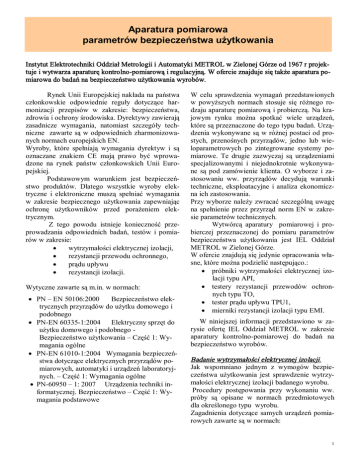 Aparatura pomiarowa parametrów bezpieczeństwa użytkownika