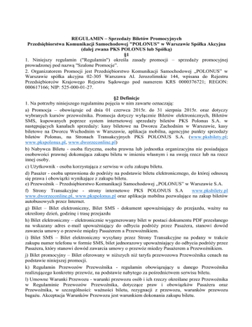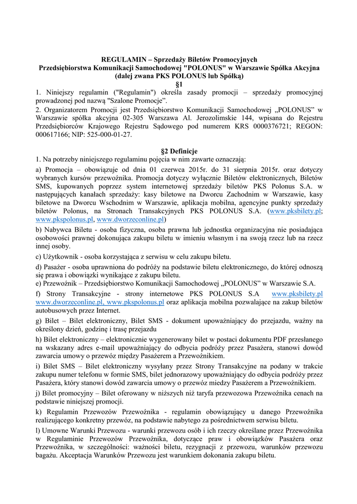 się do postanowień Regulaminu Internetowej Sprzedaży Biletów PKS POLONUS S.A. lub