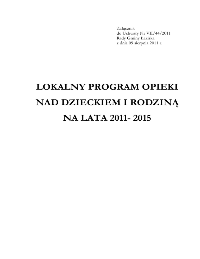 lokalny program opieki nad dzieckiem i rodziną na lata