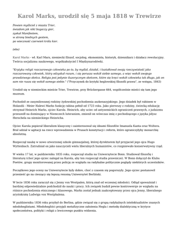 Karol Marks - wł. Karl Marx, niemiecki filozof, socjolog, ekonomista, historyk, dziennikarz i działacz rewolucyjny.