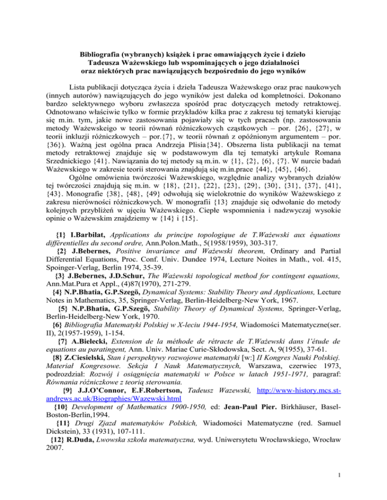 {43}. Monografie {38}, {48}, {49} odwołują się wielokrotnie do wyników Ważewskiego z