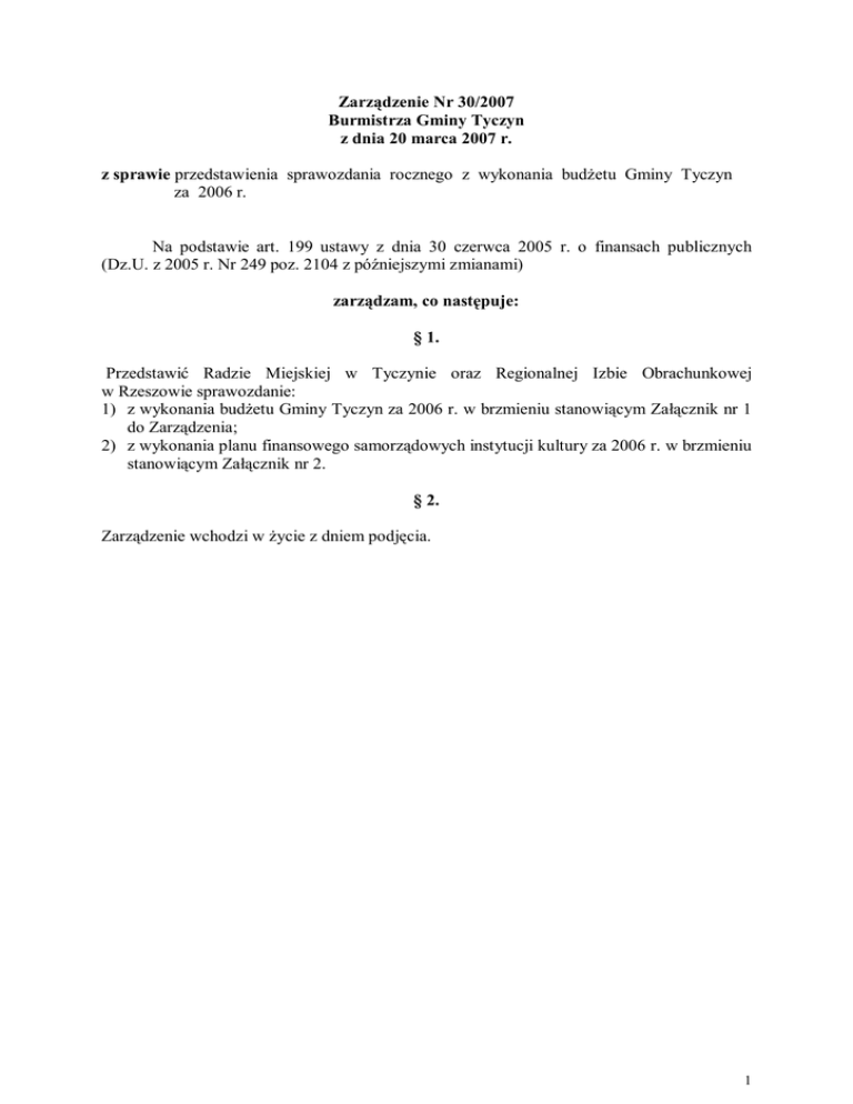 Zarządzenie Nr 30/2007 Burmistrza Gminy Tyczyn z dnia 20 marca