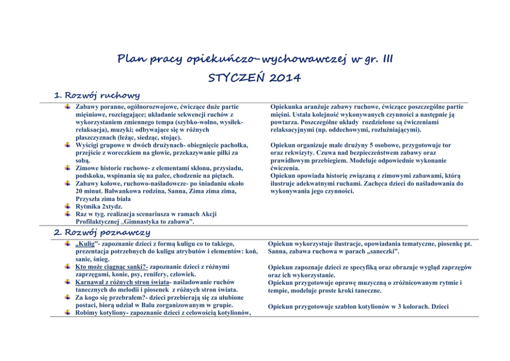 Plan pracy opiekuńczo-wychowawczej w gr. III STYCZEŃ 2014