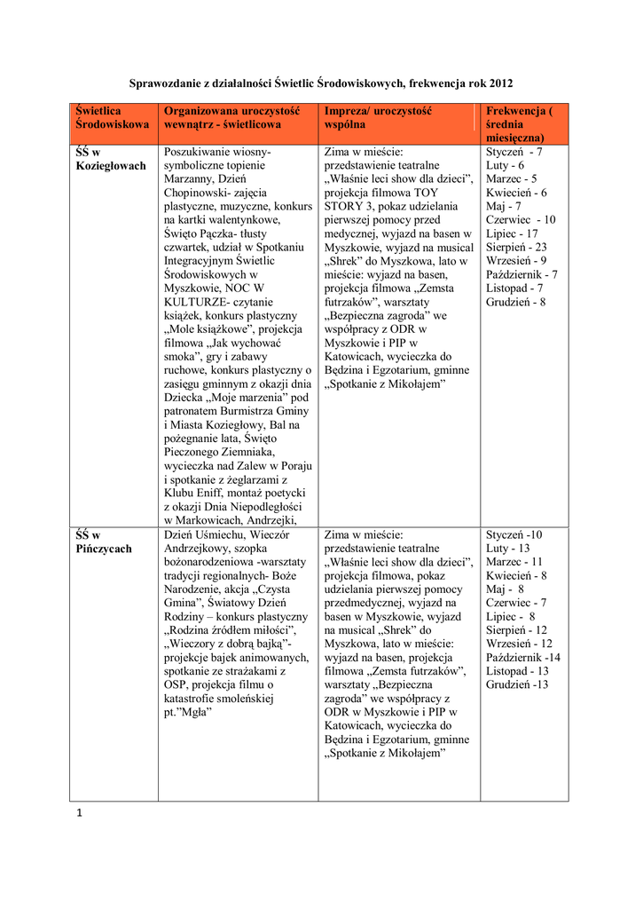 1 Sprawozdanie z działalności Świetlic Środowiskowych, frekwencja