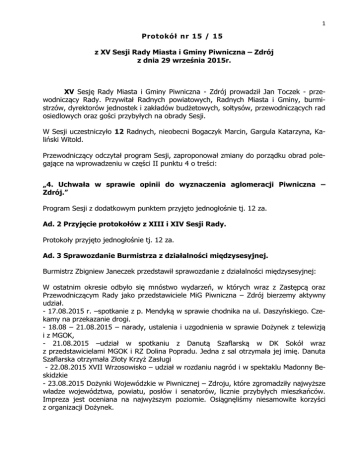 Sesja nr 15 w dniu 29.09.2015 r. - Miasto i Gmina Piwniczna