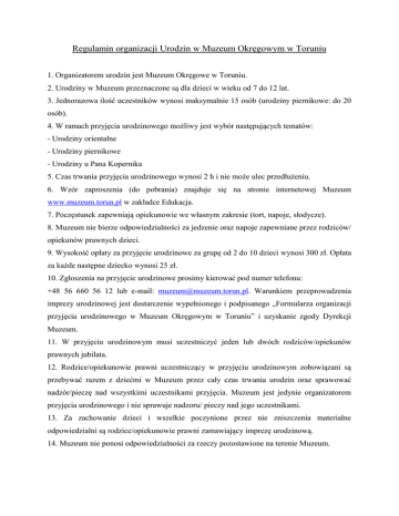 Regulamin organizacji Urodzin w Muzeum Okręgowym w Toruniu