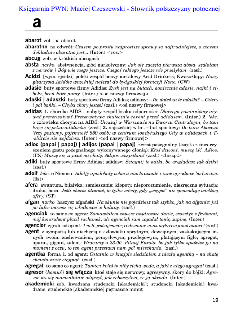 kr´ci si´ pe∏no adidasów. (zas∏.) 3. najcz´Êciej w lm. – but sportowy: Do baru Abaccus
