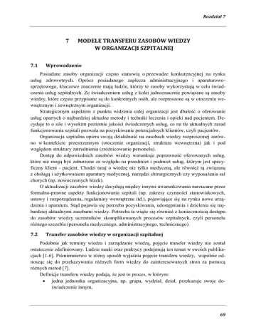 7 modele transferu zasobów wiedzy w organizacji szpitalnej