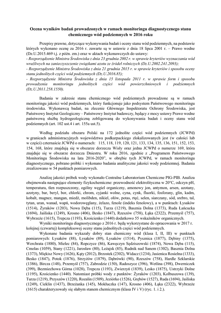 wody podziemne 2016 - Wojewódzki Inspektorat Ochrony