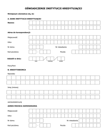 OŚWIADCZENIE INSTYTUCJI KREDYTUJĄCEJ