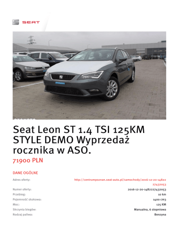 Zapisz ofertę w pliku PDF - Dealer SEAT Centrum Poznań