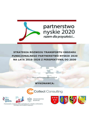 STRATEGIA ROZWOJU TRANSPORTU OBSZARU FUNKCJONALNEGO PARTNERSTWO NYSKIE 2020 NA LATA 2016-2026 Z PERSPEKTYWĄ DO 2030 www.partnerstwo-nyskie2020.pl WYKONAWCA: Spis treści Spis treści ................................................................................................... 2 Wstęp ......................................................................................................... 8 1. Streszczenie ........................................................................................... 9 2. Diagnoza aktualnego stanu obszaru transportu w OF PN 2020 ............. 12 2.1. Charakterystyka Obszaru Funkcjonalnego Partnerstwo Nyskie 2020 ........12 2.2. Przegląd istniejących dokumentów strategicznych .................................15 2.2.1. Dokumenty europejskie .........................................................16 2.2.2. Dokumenty krajowe ..............................................................17 2.2.3. Dokumenty regionalne ...........................................................21 2.3. Opis istniejącej sieci drogowej wraz z opracowaniem kartograficznym .....23 2.3.1. System drogowy OF PN 2020..................................................23 2.3.2. Wyniki badań natężenia ruchu na drogach OF PN 2020 ..............32 2.3.3. Prognoza natężenia ruchu ......................................................35 2.3.4. Badania wykorzystania na terenie OF PN 2020 powierzchni parkingowych .......................................................................38 2.4.1. PKS Nysa .............................................................................43 2.4.2. MZK Nysa ............................................................................46 2.4.3. Arriva Bus Transport Polska Sp. z o. o. (oddział w Prudniku).......48 2.4.4. PKS Głubczyce ......................................................................51 2.4.5. PKS w Brzegu Sp. z o.o. .........................................................54 2.4.6. Charakterystyki liczbowe czterech największych przewoźników na terenie OF PN 2020 ...........................................................56 2.4.7. Analiza pozostałych przewoźników działających na terenie Partnerstwa Nyskiego ............................................................59 2.5. Opis istniejącej infrastruktury przeznaczonej dla rowerów wraz ze szczegółową inwentaryzacją (popartą badaniami terenowymi) ................63 2.5.1. Trasy rowerowe na terenie OF PN 2020 ....................................63 2.5.2. Statystyczne zestawienie ścieżek rowerowych na terenie OF PN 2020 ..........................................................................69 Strona 2 z 307 2.4. Opis istniejącej sieci transportu zbiorowego wraz ze szczegółową inwentaryzacją połączeń oraz opracowaniem kartograficznym ................43 2.5.3. Prezentacja ścieżek rowerowych w poszczególnych gminach OF PN 2020 ......................................................................... 70 2.5.4. Podsumowanie ..................................................................... 75 2.6. Diagnoza stanu infrastruktury pozostałych środków transportu............... 76 2.6.1. Transport lotniczy ................................................................. 76 2.6.2. Transport wodny................................................................... 77 2.6.3. Transport kolejowy ............................................................... 78 2.6.4. Stan dworców kolejowych w głównych miastach OF PN 2020...... 80 2.7. Przejścia graniczne na obszarze OF PN 2020 ........................................ 81 2.7.1. Drogowe przejścia graniczne .................................................. 82 2.7.2. Przejścia małego ruchu granicznego ........................................ 82 2.7.3. Przejścia kolejowe ................................................................ 84 2.8. Opis istniejących rozwiązań i analiza funkcjonalności wdrożonych Inteligentnych Systemów Transportowych (ITS) ................................... 84 2.8.1. Planowane rozwiązania ITS na OF PN 2020 .............................. 85 2.9. Diagnoza problemów, barier i ograniczeń komunikacyjnych w układzie funkcjonalnym obszaru objętego opracowaniem ................................... 86 2.10. Wyniki badań preferencji i zachowań transportowych mieszkańców OF PN 2020 przeprowadzonych w ramach opracowania Badanie wśród mieszkańców OF PN 2020 .................................................................. 88 2.10.1. Badanie wśród mieszkańców w gospodarstwach domowych na terenie OF PN 2020 ............................................................... 88 2.10.2. Badanie wśród pracowników zakładów pracy znajdujących się na terenie OF PN 2020 ............................................................... 99 2.10.3. Badanie wśród uczniów szkół znajdujących się na terenie OF PN 2020 ................................................................................. 102 2.11. Inwentaryzacja generatorów ruchu na terenie OF PN 2020 .................. 108 3. Studium Komunikacyjne ......................................................................112 Strona 3 z 307 3.1. Komunikacyjna analiza SWOT dla całego obszaru OF PN 2020 .............. 112 3.2. Analiza wewnętrznych i zewnętrznych potrzeb transportowych OF PN 2020 ................................................................................... 119 3.2.1. Komunikacja publiczna ........................................................ 119 3.2.2. Komunikacja drogowa i parkingi ........................................... 122 3.2.3. Infrastruktura rowerowa ...................................................... 125 3.2.4. Podsumowanie i rekomendacje ............................................. 127 3.3. Wskazanie niezbędnych inwestycji infrastrukturalnych wewnątrz PN 2020 propozycje modernizacji, przebudowy oraz budowy nowych odcinków ... 131 3.4. Analiza ruchu rowerowego w kontekście 