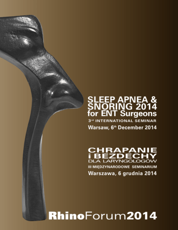 SLEEP APNEA & SNORING 2014 for ENT Surgeons 3 rd INTERNATIONAL SEMINAR Warsaw, 6th December 2014 CHRAPANIE i BEZDECHY DLA LARYNGOLOGÓW III MI¢DZYNARODOWE SEMINARIUM Warszawa, 6 grudnia 2014 RhinoForum2014 Organizatorzy / Organizers: KLINIKA OTORYNOLARYNGOLOGII WYDZIA¸ LEKARSKO-DENTYSTYCZNY WARSZAWSKI UNIWERSYTET MEDYCZNY kierownik – prof. dr hab. med. Antoni Krzeski (Warszawa) DEPARTMENT of OTORHINOLARYNGOLOGY FACULTY of MEDICINE and DENTISTRY WARSAW MEDICAL UNIVERSITY Head – prof. Antoni Krzeski, MD, PhD (Warsaw, Poland) prezes – prof. dr hab. med. Antoni Krzeski President – prof. Antoni Krzeski, MD, PhD ✻ Miejsce obrad / Venue: SOUND GARDEN HOTEL, Warszawa, ul. ˚wirki i Wigury 18 tel. (+48) 22 279 14 00 J´zyk: polski / angielski Language: English / Polish 2 RhinoForum2014 PROGRAM 8.30–10.30 Sesja I* Session I* sala / room SYMPHONY parter / 1ST floor sala / room CONCERTO I pi´tro / 2 nd floor przewodniczàcy / chair: prof. Antoni Krzeski moderator: prof. Pawe∏ Górski – Chrapanie, OBPS, laryngolog – Snoring, OSA, ENT-surgeon prof. Antoni Krzeski (Polska / Poland) – OSA update / OBPS – aktualny stan wiedzy – prof. Ron Mitchell (USA) – Role of OSA in diabetes and obesity – Znaczenie OBPS w patomechanizmie cukrzycy i oty∏oÊci – prof. Patrizio Tatti (W∏ochy / Italy) – OBPS a przewlek∏e obturacyjne choroby p∏uc – OSA and chronic obstructive pulmonary diseases – prof. Pawe∏ Górski (Polska / Poland) – Is OSA a hidden killer in diabetes? – Czy OBPS jest cichym zabójcà u chorych z cukrzycà? – prof. Patrizio Tatti (W∏ochy / Italy) – Nowa metoda oceny nosowej i ustnej drogi oddechowej – A new approach to assessment of nasal and oral breathing routes – dr Wojciech Kukwa (Polska / Poland) 10.30–11.00 Kawa / herbata Coffee break * T¸UMACZENIE SYMULTANICZNE / SIMULTANEOUS TRANSLATION RhinoForum2014 3 PROGRAM 11.00–13.00 Sesja II* Session II* sala / room SYMPHONY parter / 1ST floor sala / room CONCERTO I pi´tro / 2 nd floor przewodniczàca / chair: prof. Ewa Olszewska moderator: prof. Andrzej Kukwa – Rhinologic aspects of sleep disordered breathing – Rynologiczne aspekty zaburzeƒ oddychania podczas snu – prof. Robson Capasso (USA) – Evaluation of upper airway obstruction in patients with sleep related breathing disorders – Diagnostyka niedro˝noÊci górnych dróg oddechowych u pacjentów z zaburzeniami oddychania podczas snu – dr Bhik Kotecha (W. Brytania / UK) – How to evaluate the surgical OSA patient? – Jak diagnozowaç pacjenta z OBPS w aspekcie leczenia chirurgicznego? – prof. Robson Capasso (USA) – Drug-induced sedation endoscopy (DISE): technique & controversies – Diagnostyka endoskopowa podczas snu farmakologicznego: technika i kontrowersje – dr Bhik Kotecha (W. Brytania / UK) – Diagnostyka endoskopowa podczas snu farmakologicznego – doÊwiadczenia w∏asne – Drug-induced sedation endoscopy (DISE): personal experience – dr Zuzanna Gronkiewicz (Polska / Poland) – dr Wojciech Kukwa (Polska / Poland) 13.00–14.00 Obiad / Lunch * T¸UMACZENIE SYMULTANICZNE / SIMULTANEOUS TRANSLATION 4 RhinoForum2014 PROGRAM 14.00–16.00 Sesja III* Session III* sala / room SYMPHONY parter / 1ST floor sala / room CONCERTO I pi´tro / 2 nd floor przewodniczàcy / chair: dr Wojciech Kukwa moderator: prof. Robson Capasso – Bruksizm a zaburzenia oddychania podczas snu – Bruxism and sleep related breathing disorders – prof. Jolanta Kostrzewa-Janicka (Polska / Poland) – An overview of surgical intervention in patients with sleep-related breathing disorders – Opcje chirurgiczne u pacjentów z zaburzeniami oddychania podczas snu – dr Bhik Kotecha (W. Brytania / UK) – Results of the childhood adenotonsillectomy (CHAT study) – Wyniki adenotonsilektomii u dzieci (badanie CHAT) – prof. Ron Mitchell (USA) – Surgical therapy beyond T&A – Leczenie chirurgiczne zaburzeƒ oddychania podczas snu po wykonaniu adenotonsilektomii – prof. Ron Mitchell (USA) * T¸UMACZENIE SYMULTANICZNE / SIMULTANEOUS TRANSLATION RhinoForum2014 5 PROGRAM 16.15–18.00 Sesja IV* sala / room SYMPHONY Session IV* parter / 1ST floor sala / room CONCERTO I pi´tro / 2 nd floor przewodniczàcy / chair: dr Wojciech Kukwa moderator: prof. Ron Mitchell – Diagnostyka obrazowa u pacjentów z zespo∏em obturacyjnych bezdechów podczas snu – Imaging in sleep apnea patients – prof. Ewa Olszewska (Polska / Poland) – Radiofrequency surgery in patients with sleep-related breathing disorders – Leczenie aplikacjà fal radiowych (RFQ) u pacjentów z zaburzeniami oddychania podczas snu – dr Bhik Kotecha (W. Brytania / UK) – OSA surgery – personal remarks/experience – Leczenie chirurgiczne OBPS – w∏asne doÊwiadczenia i spostrze˝enia – prof. Robson Capasso (USA) 20.00 Wieczór na Zamku Królewskim / Evening at the Royal Castle * T¸UMACZENIE SYMULTANICZNE / SIMULTANEOUS TRANSLATION 6 RhinoForum2014