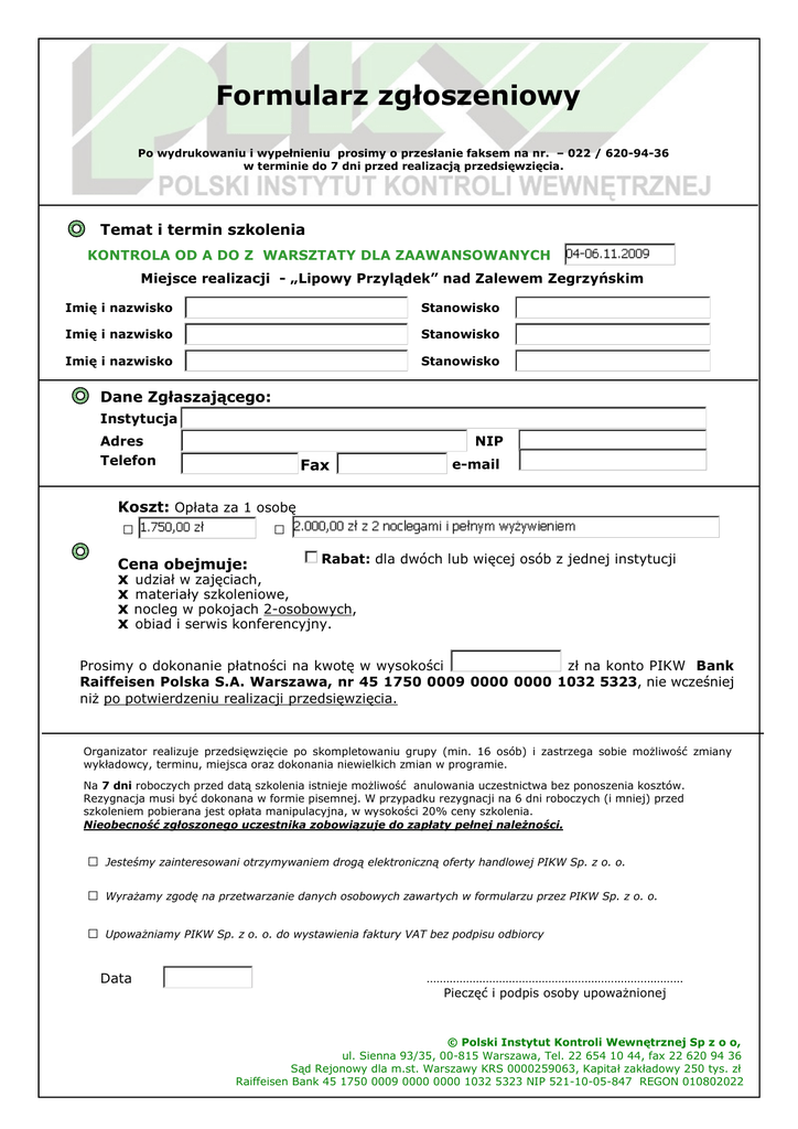 Formularz zg\263oszenia.pub - Polski Instytut Kontroli Wewnętrznej
