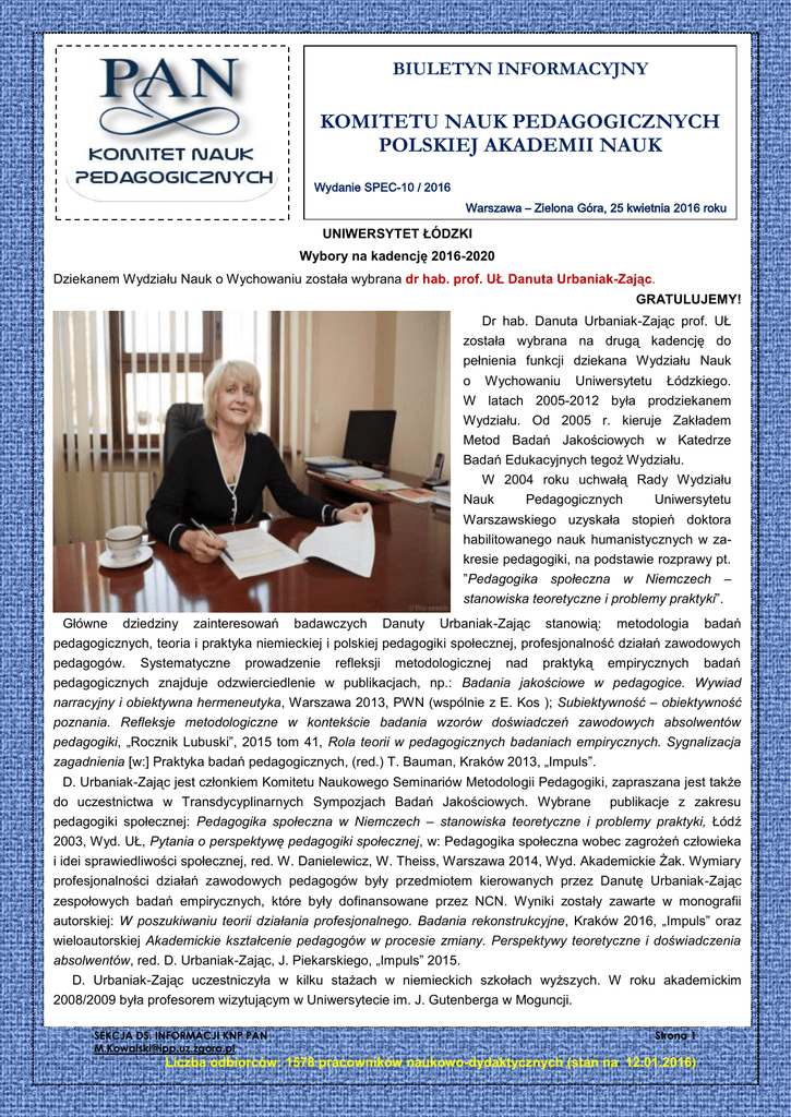 komitetu nauk pedagogicznych polskiej akademii nauk