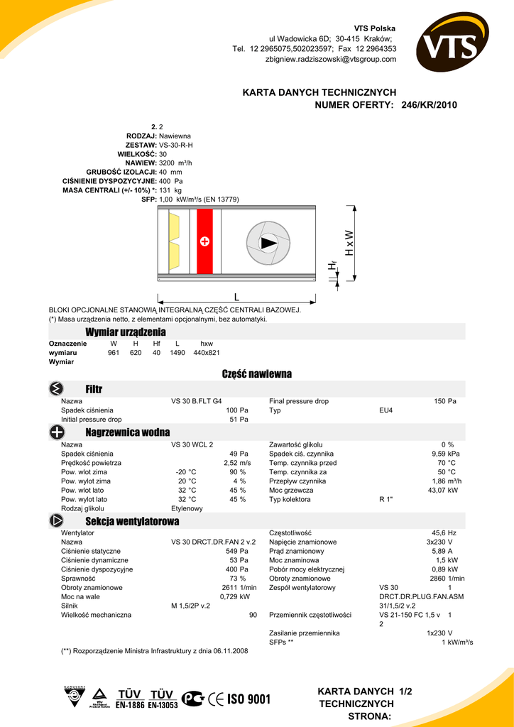 Wymiarurządzenia Częśćnawiewna Filtr Nagrzewnicawodna