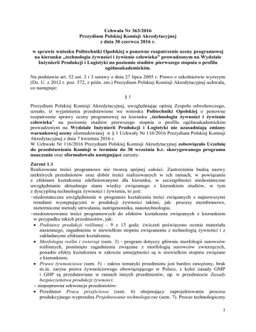 1 Uchwała Nr 363/2016 Prezydium Polskiej Komisji Akredytacyjnej z