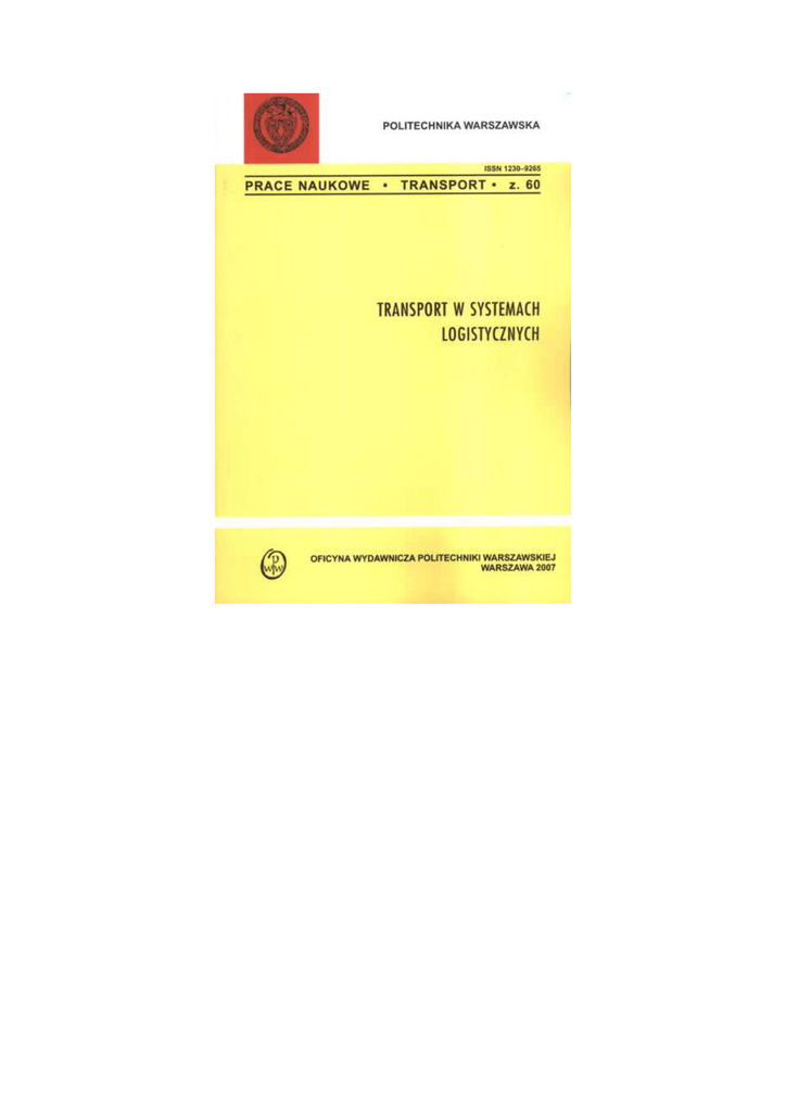 TRANSPORT W SYSTEMACH LOGISTYCZNYCH SPIS TREŚCI - Contents L e o n a s P o v i l a s, L i n g a i t i s, D a r i u s B a z a r a s – An analysis of reverse and green logistics: theoretical aspects . . . . . . . . . . . . . . . . . . . . . . . . . . . . . . . . . . . . . . . . . . . . . . . . . . . . . . . . . . . . . . . . . . . . Analiza aspektów teoretycznych “zielonej logistyki” oraz logistyki zwrotów. 5 S t a n i s ł a w P i a s e c k i – Rola transportu w systemach logistycznych w warunkach konkurencji rynkowej. . . . . . . . . . . . . . . . . . . . . . . . . . . . . . . . . . . . . . . . . . . . . . . . . . . . . . . . . . . . . . . . . . . . . . . . . . . The role of transportation in logistic systems in aspect of marketable competition. 13 J ó z e f O k u l e w i c z – System logistyczny i podmiotowość klienta w kontekście transportu . . . . . . . . . . The logistic system and a customer subjectivity with relation to transport. 23 M a r i a n n a J a c y n a, A n d r z e j ś u r k o w s k i – Wybrane aspekty doboru dostawcy pasaŜerskich usług transportowych . . . . . . . . . . . . . . . . . . . . . . . . . . . . . . . . . . . . . . . . . . . . . . . . . . . . . . . . . . . . . . . . . The choice of transportation services suppliers in passenger traffic. 35 T o m a s z A m b r o z i a k, R e n a t a P i ę t k a – Metoda wyznaczania górnego ograniczenia dla całkowitej liczby odbiorców w problemach trasowania pojazdów z ograniczeniami czasowymi oraz ograniczoną liczbą pojazdów . . . . . . . . . . . . . . . . . . . . . . . . . . . . . . . . . . . . . . . . . . . . . . . . . . . . . . . . . . . Vehicle routing problem with time windows and limited number of vehicles. Method of determining an upper bound for the total number of customers. 47 M a r c i n H a j d u l – Przebudowa systemu transportowego z wykorzystaniem narzędzi symulacyjnych oraz wielokryterialnego wspomagania decyzji . . . . . . . . . . . . . . . . . . . . . . . . . . . . . . . . . . . . . . . . . . . . . Reconstruction of transport system using simulation tools and multicriteria decision support systems. 55 T o m a s z A m b r o z i a k, J o l a n t a K. ś a k – Metoda wyznaczania optymalnej lokalizacji lokalnych centrów logistycznych w wybranym obszarze usług logistycznych . . . . . . . . . . . . . . . . . . . . The method of determining optimal localization of logistic centers for selected range of logistic services. 67 M a r i u s z W a s i a k – Zastosowanie teorii masowej obsługi do analizy systemów logistycznych . . . . . . Application queuing theory for the logistics systems analysis. 77 K r z y s z t o f C h w e s i u k – Wybrane aspekty logistyki miejskiej . . . . . . . . . . . . . . . . . . . . . . . . . . . . . . The substance of the city logistics. 89 Z b i g n i e w T a r a p a t a – Nieklasyczne modele i metody planowania tras w systemach wspomagania planowania ruchu: analiza złoŜoności, efektywności i zastosowań . . . . . . . . . . . . . . . . . . . . . . . . . . . . . . Non-classical models and methods of route planning in traffic planning support systems: analysis of complexity, effectiveness and applications 99 B a r b a r a M a Ŝ b i c – K u l m a, K r z y s z t o f S ę p – Zastosowanie algorytmu SBT jako metody minimalizacji taboru w przedsiębiorstwie transportowym . . . . . . . . . . . . . . . . . . . . . . . . . . . . . . . . . . . . . 115 The application of SBT algorithm as a method of minimizing transportation stock in transport company. A d a m K a d z i ń s k i, B a r t o s z M a j e w s k i – Stochastyczny model stacji paliw płynnych funkcjonującej w systemie pojazdów transportu zbiorowego . . . . . . . . . . . . . . . . . . . . . . . . . . . . . . . . . . 127 Stochastic model of fuel station functioning in a system of vehicles of collective transport. W a l d e m a r P a r k i t n y – Wykorzystanie programu symulującego procesy logistyczne do projektowania zmian w organizacji ruchu samochodów i zasad udostępniania miejsc na parkingu . . . . . 139 Availing oneself the program simulating logistic processes to projecting changes in car traffic organization and principles of rendering the places on parking accessible. 4 Spis treści T o m a s z A m b r o z i a k, D a r i u s z P y z a – Metoda optymalizacji systemu obsługi technicznej . . . The method of optimizing the technical services system 149 L e c h B u k o w s k i, J e r z y F e l i k s, M a r e k K a r k u l a, A d a m L i c h o t a – ZałoŜenia hybrydowego systemu wspomagania decyzji w zakresie zaopatrzenia i transportu w systemach logistycznych . . . . . . . . . . . . . . . . . . . . . . . . . . . . . . . . . . . . . . . . . . . . . . . . . . . . . . . . . . . . . . . . . . . . . . . 161 The conception of hybrid system of decision making in range of supply and the transportation in logistic systems J a n u s z F i j a ł k o w s k i – Pojemność buforów międzyoperacyjnych a liczba urządzeń technologicznych w projektowaniu magazynów - relacje ilościowe . . . . . . . . . . . . . . . . . . . . . . . . . . . . . 171 The meaning of inter-operational buffers capacity in correlation with the number of technological equipment in warehouses designing process – quantitative relation. A n d r z e j R a t k i e w i c z, A d a m B i a l i k – Formowanie jednostek ładunkowych z uwzględnieniem parametrów mechanicznych opakowań . . . . . . . . . . . . . . . . . . . . . . . . . . . . . . . . . . . 181 Load units shaping according to carton mechanical parameters K o n r a d L e w c z u k – Efektywność dwustopniowych systemów komisjonowania ze względu na przepływ ładunków i informacji . . . . . . . . . . . . . . . . . . . . . . . . . . . . . . . . . . . . . . . . . . . . . . . . . . . . . . . . . 191 Efficiency analysis of two-step order picking systems for material and information handling M a r i u s z K o s t r z e w s k i – Ocena procesów komis