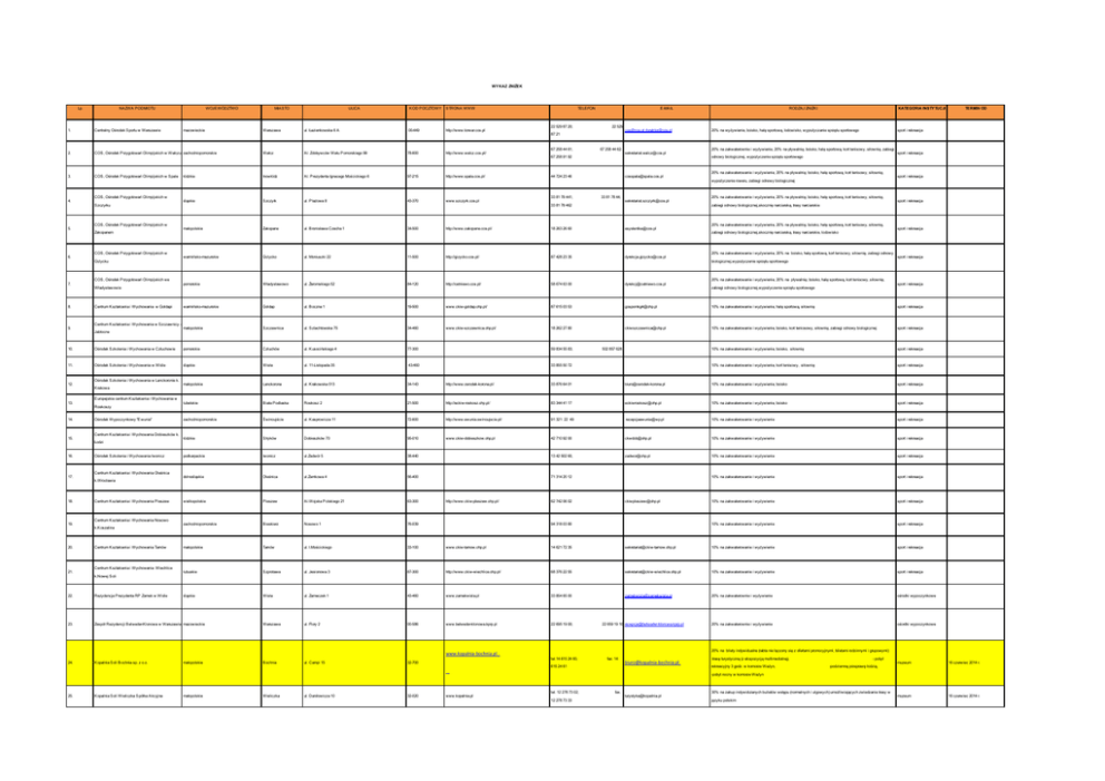 Lp. NAZWA PODMIOTU WOJEWÓDZTWO MIASTO ULICA KOD