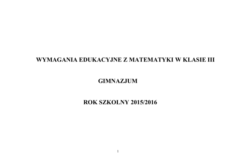 Wymagania edukacyjne z matematyki kl 3 gimnazjum