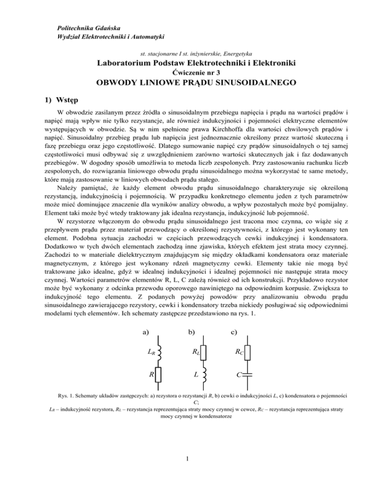 Ćw. 3. Obwody RLC - Wydział Elektrotechniki i Automatyki