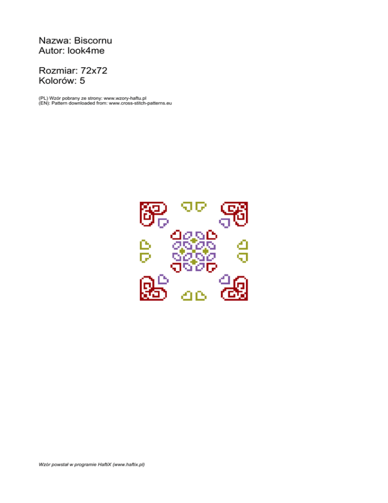 Nazwa: Biscornu Autor: look4me Rozmiar: 72x72 Kolorów: 5