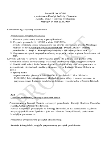 Protokół Nr 11/2015 z posiedzenia Komisji