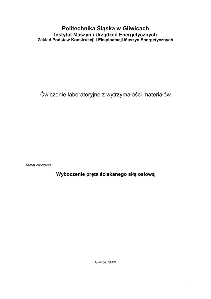 Politechnika Śląska w Gliwicach Ćwiczenie laboratoryjne z