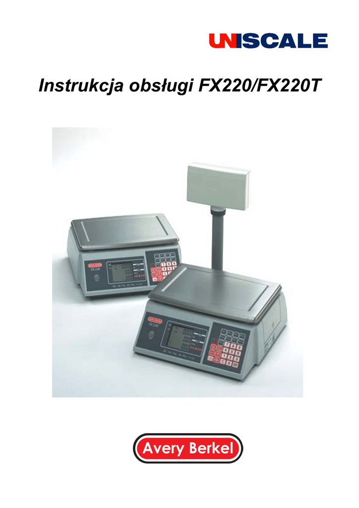 Instrukcja obsługi FX220/FX220T © Avery Berkel Limited 2000. Wszystkie prawa zastrzeżone. Informacje zawarte w niniejszej publikacji stanowią własność firmy Avery Berkel Limited. Avery Berkel Limited nie odpowiada za ewentualne błędy i przeoczenia. Powielanie niniejszego podręcznika bez pisemnej zgody Avery Berkel Limited jest zabronione. Prawa autorskie oraz zakaz kopiowania obejmują wszystkie nośniki informacji. Ostrzeżenia Urządzenia pracujące pod napięciem sieciowym, wykorzystywane w wilgotnym otoczeniu, muszą być, ze względów bezpieczeństwa, zasilane ze źródła prądu posiadającego bezpiecznik i zabezpieczonego zgodnie z wymaganiami norm BS7071 lub BS7288 lub IEC 1009-2-2 BS EN 61008:1995. W PRZYPADKU POWSTANIA JAKICHKOLWIEK WĄTPLIWOŚCI NALEŻY SKONTAKTOWAĆ SIĘ Z WYKWALIFIKOWANYM ELEKTRYKIEM. W celu uniknięcia porażenia prądem lub uszkodzenia wagi, przed przystąpieniem do wykonania rutynowych czynności obsługowych urządzenie należy odłączyć od sieci elektrycznej. Czyszczenie wagi Wagi, a w szczególności jej wyświetlacza, nie wolno czyścić za pomocą substancji szorstkich (ściernych), rozpuszczalników, proszków do szorowania, roztworów alkalicznych (np. sody). W żadnym wypadku nie wolno czyścić (wycierać) wnętrza wagi. Zewnętrzne powierzchnie wagi można wytrzeć czystą szmatką zwilżoną wodą zawierającą niewielką ilość płynu do zmywania naczyń. Instalacja Należy upewnić się, czy powierzchnia, na której ma być ustawiona waga, jest mocna, stabilna, zabezpieczona przed drganiami i osłonięta przed przeciągami. W celu uchronienia pracowników przed urazami spowodowanych przemęczeniem, należy dopilnować, by waga była umieszczona w miejscu spełniającym wymagania ergonomii. W przypadku długotrwałej pracy przy wadze zalecamy, by odbywała się ona z regularnymi przerwami. 1 Montaż opcjonalnego wyświetlacza na wysięgniku Podczas montażu waga nie może być podłączona do zasilania. Za pomocą płaskiego wkrętaka zdemontować płytkę zaślepiającą znajdującą się z tyłu wagi. Wyświetlacz przymocować do wagi przy pomocy dwóch wkrętów. Wtyczkę wyświetlacza ostrożnie włożyć do gniazdka z tyłu wagi. Zamontować płytkę zaślepiającą. Ostrzeżenie: Wagi nie wolno unosić chwytając ją za wyświetlacz lub szalkę. Komunikaty o błędach W przypadku nieprzerwanego wyświetlania komunikatu o błędzie lub E 30 zablokowania wagi, urządzenie należy odłączyć od sieci zasilającej, po czym ponownie do niej przyłączyć. Jeżeli waga nadal nie działa, należy skontaktować się z autoryzowanym serwisem. Błąd chwilowy Niestabilny ciężar Nieudane wyważenie Poniżej zakresu Powyżej zakresu Kody błędów: E 5 Odłączyć, a następnie przyłączyć do zasilania. E 10 Usterka baterii. E 11 Napięcie zasilania zbyt wysokie. E 15 Skontaktować się z autoryzowanym serwisem. E 20 Błąd ważenia. E 30 Nieprawidłowe wyjście z trybu zarządzania. Wprowadzić konieczne zmiany i prawidłowo wyjść z trybu. E # Skontaktować się z autoryzowanym serwisem. E 100 Nieprawidłowa zawartość PLU (przeprogramować PLU). E 101 Transakcja nie doszła do skutku. E 102 Nieudany zapis PLU E 103 Nieudane tarowanie E 151 Awaria pamięci konfiguracji produktu E 152 Użytkownik nie ma dostępu do tej pozycji (w trybie zarządzania). 2 Włączanie wagi Przyłączanie do sieci - włożyć kabel zasilający (sieciowy), z powrotem założyć pokrywę i szalkę wagi, a następnie wagę włączyć za pomocą przełącznika sieciowego. Ostrzeżenie: Nie wolno używać uszkodzonej wtyczki/adaptera. Użycie baterii - Pojemnik z bateriami przyłączyć do wagi, a następnie umieścić go w zagłębieniu. Z powrotem założyć pokrywę i szalkę wagi. Używać tylko baterii alkaicznych. NiCad Ostrzeżenie: W celu uchronienia wagi przed uszkodzeniem przez wyciekający elektrolit, baterie wyczerpane lub uszkodzone należy natychmiast wyjąć z urządzenia. Pojawienie się symbolu na wyświetlaczu oznacza, że konieczna jest wymiana baterii (lub ich naładowanie jeżeli waga jest zasilana z akumulatorów). Korzystanie z akumulatora - akumulator podłączyć do wagi, a następnie umieścić go w zagłębieniu. Z powrotem założyć pokrywę i szalkę wagi. Ładowanie akumulatora - kabel sieciowy przyłączyć do gniazdka znajdującego się w podstawie wagi, a następnie włączyć zasilanie za pomocą przełącznika sieciowego. Uwaga: Z wagi można nadal korzystać w czasie, gdy trwa ładowanie jej akumulatora. 3 Sygnały dźwiękowe Krótkie naciśnięcie (pojedyncze) Długie naciśnięcie (nacisnąć i trzymać) Testowanie wyświetlacza Informacja serwisowa = Krótkie naciśnięcie Krótkie naciśnięcie Korzystanie z wagi Zerowanie wagi - przed rozpoczęciem ważenia należy sprawdzić, czy waga jest wyzerowana krótkie naciśnięcie Ważenie - towar położyć na wadze, po czym wpisać cenę jednostkową Cena jednostkowa Krótkie naciśnięcie Korzystanie z klawisza kasowania Kasowanie ostatnio wpisanej liczby Kasowanie wszystkich wprowadzonych danych Długie naciśnięcie Krótkie naciśnięcie Wybór innej podstawy ceny Krótkie naciśnięcie 4 Zachowanie ceny jednostkowej Krótkie naciśnięcie Cena jednostkowa Krótkie naciśnięcie Powtarzać aż do zważenia całego towaru Kasowanie ceny jednostkowej Długie naciśnięcie Krótkie naciśnięcie Programowanie klawiszy szybkiego dostępu PLU (PLU1 - PLU9) Do PLU przypisać cenę jednostkową Cena jednostkowa Krótkie naciśnięcie Programowanie PLU od 10 do 20 odbywa się w trybie zarządzania Długie naciśnięcie Uwaga: Klawiszy szybkiego dostępu nie można wykorzystać do zaprogramowania PLU, jeżeli został on już zaprogramowany w trybie zarządzania. Korzystanie z PLU Korzystanie z klawiszy szybkiego dostępu PLU - na przykład PLU2 Krótkie naciśnięcie Korzystanie z PLU 1 - 9 - na przykład PLU 7 Krótkie naciśnięcie Krótkie naciśnięcie Krótkie naci