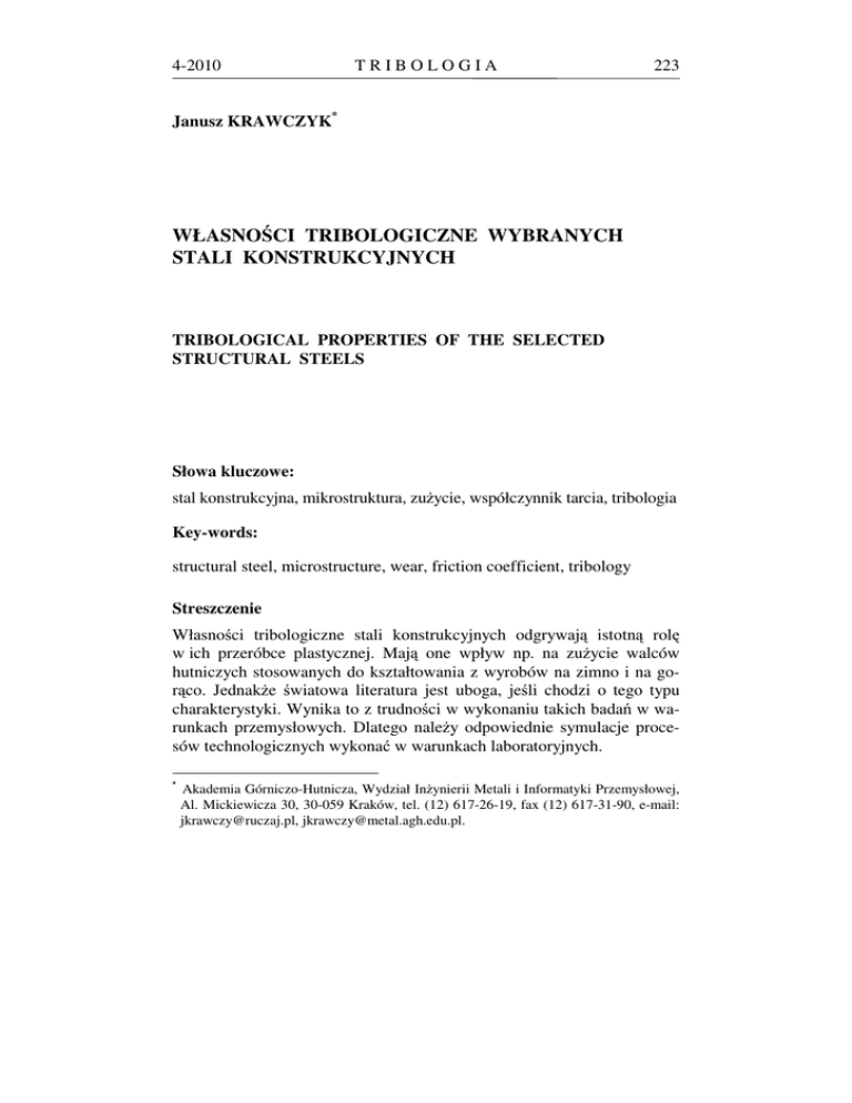 własności tribologiczne wybranych stali