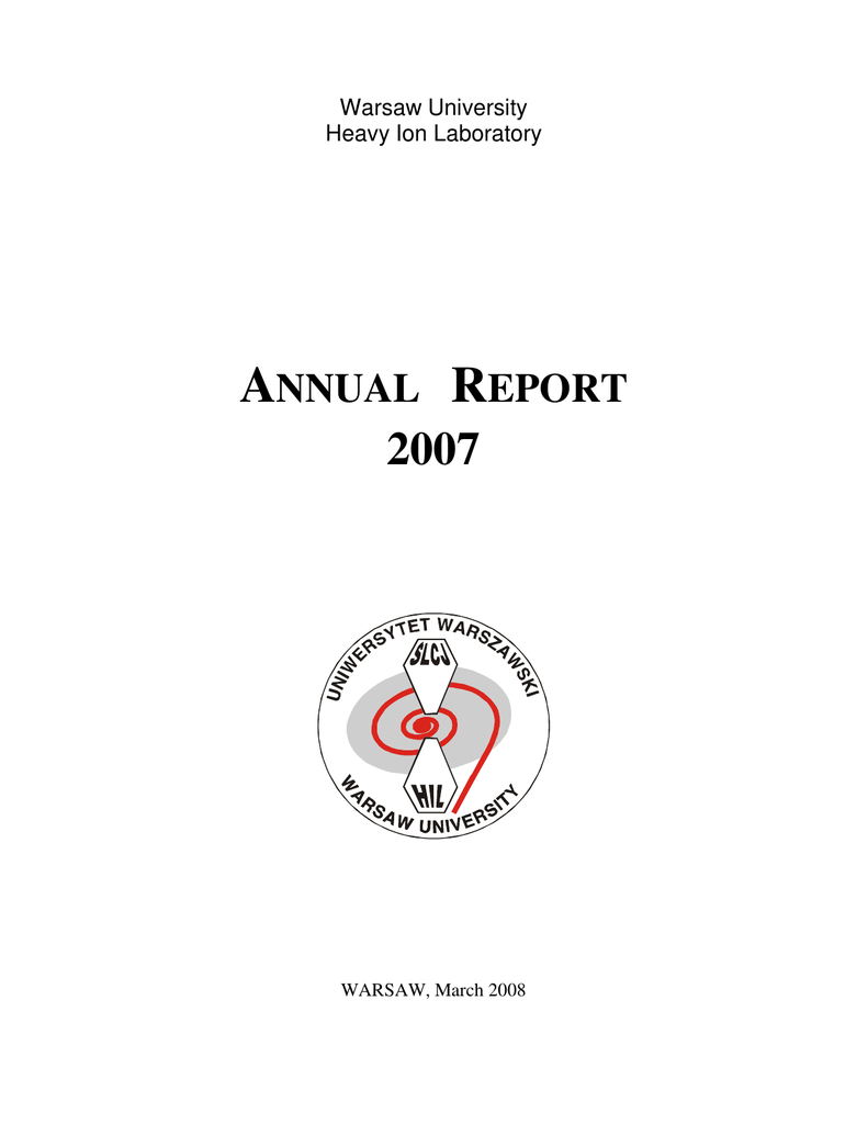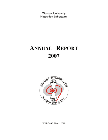 Warsaw University Heavy Ion Laboratory ANNUAL REPORT 2007 WARSAW, March 2008 Various information concerning the Laboratory is distributed via the HIL mailing list. In order to subscribe please send an e-mail to: [email protected] with the text (in the body of the message, not in the subject): subscribe hil Annual Report of Heavy Ion Laboratory, Warsaw University ul. Pasteura 5a, 02-093 Warszawa, Poland phone: +48 (22) 8222-123, +48 (22) 55-46-000 fax: +48 (22) 659-27-14 http://www.slcj.uw.edu.pl Edition: Magda Zielińska, Wojtek Gawlikowicz e-mail: [email protected], [email protected] Warsaw University Heavy Ion Laboratory, ISSN 1895-6726 Contents Introduction A. Laboratory overview 1. Operation of the cyclotron during 2007 2. Activity report of the ECR group 3. Activity of the electrical support group 4. Repair of the "A" resonator 5. Beam energy measurement 6. Computer network at HIL 7. New ECR ion source and injection line 8. The Warsaw PET Project – Radiopharmaceuticals Production Centre 9. Nuclear-coal synergy project 10. Educational and science popularisation activities at HIL 11. Polish Workshop on Heavy-Ion Acceleration and its Applications 3 7 8 10 11 12 13 14 15 16 17 B. Experiments and experimental set-ups 1. 2. 3. 4. 5. 6. 7. 8. New results in barrier distributions ICARE @ HIL Mechanism of 7Li(10B, 9Bе)8Bе reaction and 8Bе + 9Bе potential Elastic and inelastic scattering of 18O ions on 12C at 117 MeV Coulomb excitation of 100Mo – towards determination of triaxiality Implementation of a genetic algorithm to the Coulex data analysis Nuclear level lifetimes in 130La Phenomenological classification of chiral symmetry breaking based on experimental transition probabilities in 132La, 128Cs and 126Cs 9. Calibration of BaF2 scintillators as a γ-ray spectrometer 10. Nuclear structure studies of ms, µs and ns isomers in the A = 150 mass region 11. Lifetime of the (25/2+) isomer in 121Sb 12. Electron and gamma spectroscopy of transitions below isomeric state in 132Ce 13. European Array for Gamma Levels Evaluations (EAGLE) on beam of the Warsaw Cyclotron at HIL UW – status report 14. Status of the IGISOL device 15. Double sided strip monolithic silicon E-∆E telescope produced by Quasi-Selective Epitaxy 16. Reactor for homo-epitaxial growth of thick MV CVD single crystal diamonds for detector applications 17. Biological effectiveness of 12C and 20Ne ions with very high LET 21 24 26 27 28 29 31 33 34 36 37 39 42 43 44 47 48 C. Experiments using the outside facilities 1. Re-separation modes of 197Au + 197Au system at sub-Fermi energies 2. RDDS lifetime measurement in 70,72Se: no evidence for the prolate shape of the 2+1 state in 70Se 3. Coulomb excitation of neutron-rich 44Ar at SPIRAL 4. Simulations of fusion-evaporation reactions with AGATA and ancillary detectors 5. Antiprotonic atoms: neutron densities and optical potentials 6. The EURISOL-Task 11 database 53 55 56 57 59 60 D. General information on HIL activities 1. 2. 3. 4. 5. 6. 7. 8. PhD and MSc theses Seminars Publications Laboratory staff Laboratory Scientific Council Programme Advisory Committee Events at HIL Laboratory guests 67 69 73 79 80 82 83 84 INTRODUCTION The Heavy Ion Laboratory of the Warsaw University is a user-type facility, providing heavy ion beams to a number of Polish and foreign research groups and, to a limited extent, for its own research programme. In 2007 the Warsaw Cyclotron delivered almost 2000 hours of beam on target. Fifteen experiments were performed following the recommendations of the Programme Advisory Committee and for these studies more than one hundred user accesses to our facility were granted. Among papers, published in 2007 and in the beginning of 2008, one should mention the first “regular” publication resulting from work using the Warsaw IGISOL system (Phys. Rev. C76(2007)054320), dealing with the α decay of a newly found isomer in 216Fr. The Łódź-Warsaw collaboration published a detailed description of their recently developed conversion electron spectrometer (NIM A585(2008)155), which is presently coupled to the gamma-ray multidetector system OSIRIS-II in order to investigate properties of longlived isomeric states in gamma-electron coincidence measurements. Two papers from the Kiev-Kraków-Warsaw collaboration (Eur. Phys. J. A33(2007)317, Nucl. Phys. A785 (2007)293) describe the results of investigation of elastic and inelastic scattering of light heavy ions on light targets. Finally, a paper by visitors from Kielce presents the data obtained without the cyclotron using directly the beam from the ECR ion source (Vacuum 81(2007) 1348). The section B of this Report presents on-going research projects, the results of which are often not yet published elsewhere. Let me quote a few examples of these contributions. The very active Coulomb Excitation group (based mainly at HIL) presents a new implementation of an algorithm inspired by evolutionary biology, allowing to speed up the data evaluation using the GOSIA code. After years of work with single germanium detectors, operating in coincidence with the CUDAC scattering chamber, the same group eventually migrated to the OSIRIS-II gamma-ray multidetector system, substantially increasing the event statistics in the study of Coulomb excited levels in 100Mo. A team led by Nuclear Physics Division of the Warsaw University continues its research on chiral symmetry breaking in nuclei in the mass region around A=130. Their recent experimental work resulted in a large set of nuclear level lifetimes in 130La measured using the Doppler Shift Attenuation Method, which are reported here for the first time. The same group proposes a phenomenological classification of the symmetry breaking phenomenon based on the transition probabilities, previously determined using the Warsaw Cyclotron beams. Their achievements were clearly recognized by the Polish scientific community – Dr. Ernest Grodner from this group was awarded in 2007 the prestig