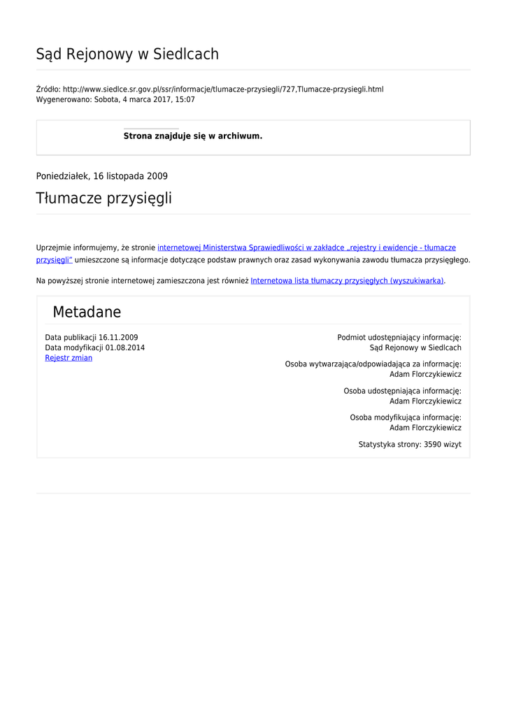 Sąd Rejonowy w Siedlcach Tłumacze przysięgli Metadane