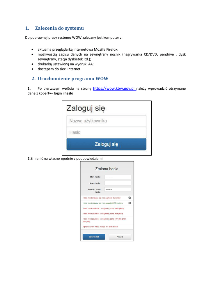 1. Zalecenia do systemu 2. Uruchomienie programu WOW