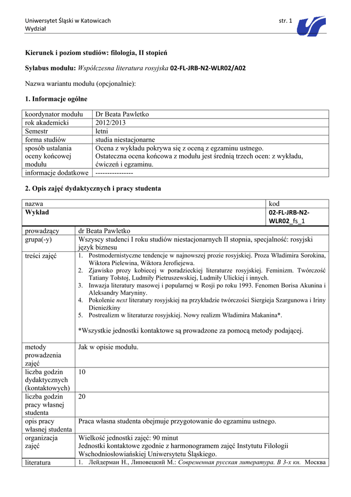 Współczesna literatura rosyjska 02-FL-JRB-N2