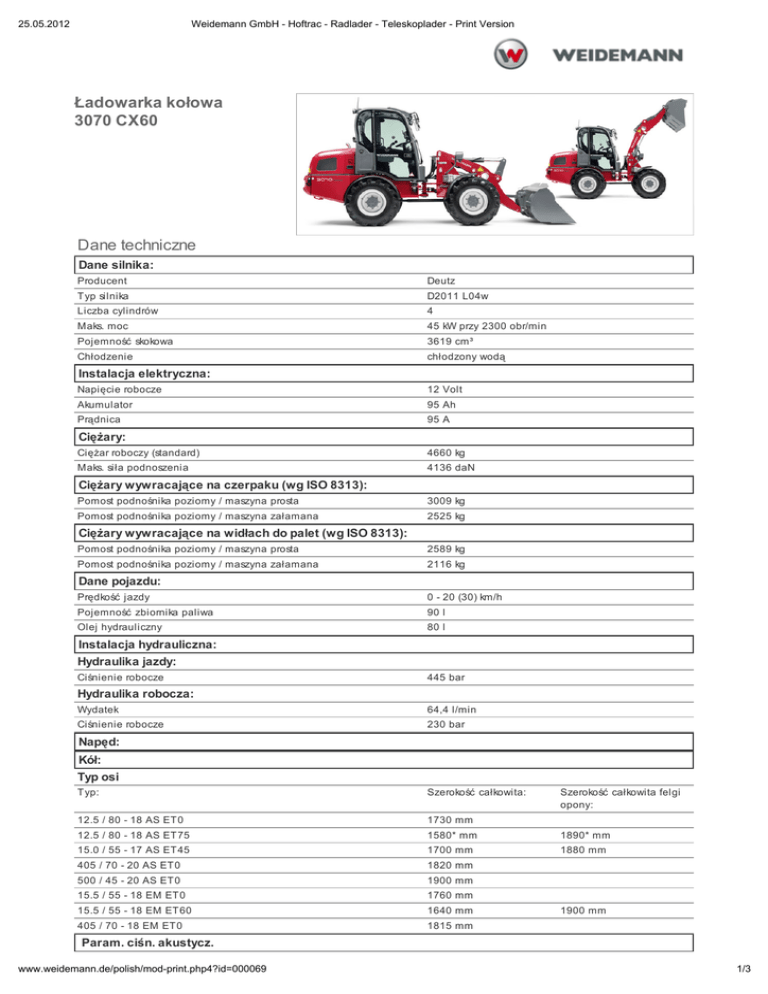 Ładowarka kołowa 3070 CX60 Dane techniczne