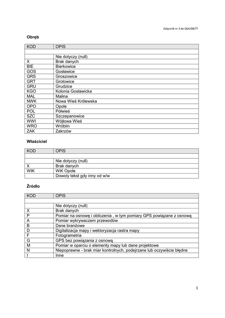 1 Obręb KOD OPIS Nie dotyczy (null) X Brak danych