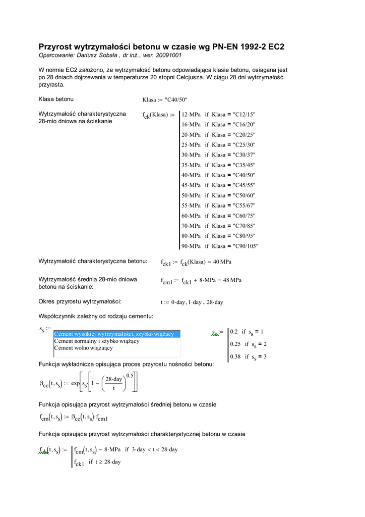 Mathcad - Przyrost wytrzymalości betonu