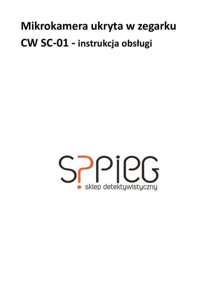 Mikrokamera ukryta w zegarku CW SC-01 - instrukcja obsługi A: Przycisk A służy do robienia zdjęć B: Gniazdo ładowania i transferu danych C: Przycisk C służy do włączenia/wyłączenia, wstrzymania, oraz zapisania pliku D: Jest to obiektyw E: Jest to pokrętło służące do ustawiania czasu w zegarku F: Ukryty mikrofon G: Dioda LED: kolor niebieski – tryb video, kolor czerwony – tryb zdjęciowy Salon detektywistyczny SZPIEG Kraków, ul. Starowiślna 42 www.szpieg.sklep.pl [email protected] godz. otwarcia: pn-pt: 10-18, sob.10-14 Szybki kontakt 12 426 46 12 Włączenie/wyłączenie Aby włączyć lub wyłączyć urządzenie naciśnij i przytrzymaj przycisk C przez 4 sekundy. Nagrywanie video Uruchomienie kamery: naciśnij i przytrzymaj przez 2 sekundy przycisk C (na początku świeci się zarówno czerwona jak i niebieska dioda. Następnie czerwona dioda po trzykrotnym mignięciu wyłącza się. W tym momencie urządzenie jest gotowe do nagrywania) Rozpoczęcie nagrywania odbywa się po pojedynczym naciśnięciu przycisku C. Zakończenie nagrywania następuje po jednokrotnym naciśnięciu przycisku C. Aby zakończyć nagrywanie – naciśnij dwukrotnie przycisk C. Wyłączenie nagrywania jest sygnalizowane zaświeceniem się niebieskiej diody. Naciśnij jednokrotnie przycisk C, aby nagrywać video, co będzie sygnalizowane trzykrotnym mignięciem niebieskiej diody; Robienie zdjęć Włącz urządzenie naciskając przycisk C. Aby wykonywać zdjęcia wystarczy nacisnąć przycisk A. Ładowanie baterii Podłącz urządzenie do komputera PC lub ładowarki poprzez kabel USB w celu rozpoczęcia ładowania. Podczas ładowania świeci się czerwona dioda. Zgaśnięcie diody, oznacza pełne naładowanie baterii. Urządzenie jako dysk wymienny Wyłączone urządzenie podłącz za pomocą kabla USB. Dysk powinien zostać wykryty automatycznie. Urządzenie jako kamera komputerowa Zainstaluj sterownik z załączonej płyty CD i włącz zegarek. Podłącz urządzenie do komputera za pomocą kabla USB. Otwórz „Mój Komputer” Kamera powinna zostać wykryta jako komputerowa. Salon detektywistyczny SZPIEG Kraków, ul. Starowiślna 42 www.szpieg.sklep.pl [email protected] godz. otwarcia: pn-pt: 10-18, sob.10-14 Szybki kontakt 12 426 46 12 Ustawienie znacznika czasowego Wyłącz urządzenie Podłącz urządzenie do komputera poprzez kabel USB Otwórz folder „Mój Komputer” Otwórz dysk wymienny Utwórz plik tekstowy o nazwie: „time.txt” Wpisz w pliku czas w formacie: RRRR-MM-DD GG:MM:SS Zapisz plik Odłącz urządzenie WSKAZÓWKI BEZPIECZEŃSTWA Zapoznaj się uważnie z podanymi tu w skrócie wskazówkami. Nieprzestrzeganie tych wskazówek może być niebezpieczne lub niezgodne z prawem. PROFESJONALNY SERWIS Instalować i naprawiać ten produkt może wyłącznie wykwalifikowany personel. BATERIE I AKCESORIA Używaj jedynie zatwierdzonych do użytku baterii i akcesoriów. Nie podłączaj niekompatybilnych produktów. WODOODPORNOŚĆ To urządzenie nie jest wodoodporne. Chroń je przed wilgocią. UWAGA: Nagrywanie oraz podsłuchiwanie osób bez ich zgody jest niezgodne z prawem. Salon detektywistyczny SZPIEG Kraków, ul. Starowiślna 42 www.szpieg.sklep.pl [email protected] godz. otwarcia: pn-pt: 10-18, sob.10-14 Szybki kontakt 12 426 46 12