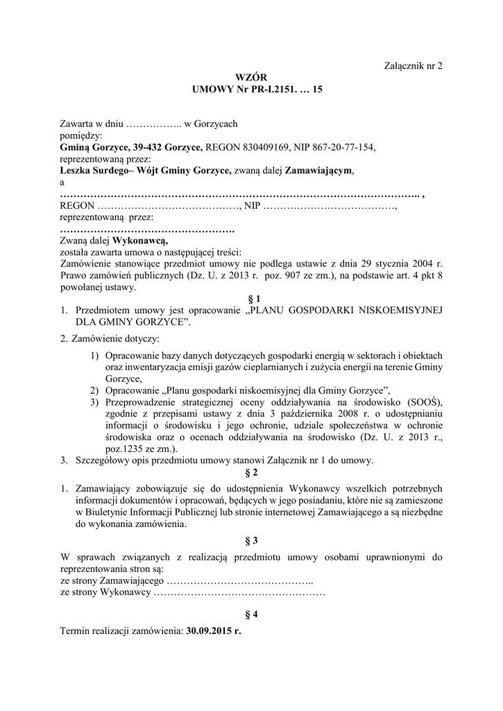 Załącznik nr 2 WZÓR UMOWY Nr PR-I.2151. … 15 Zawarta w dniu