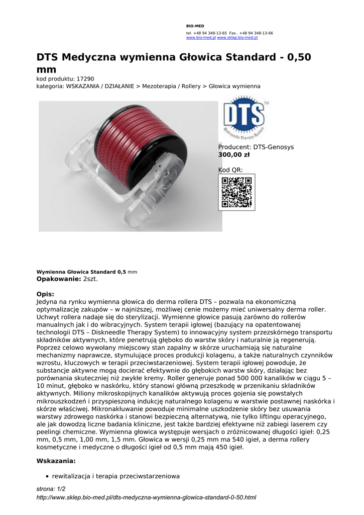 DTS Medyczna wymienna Głowica Standard - 0,50 mm - bio-med